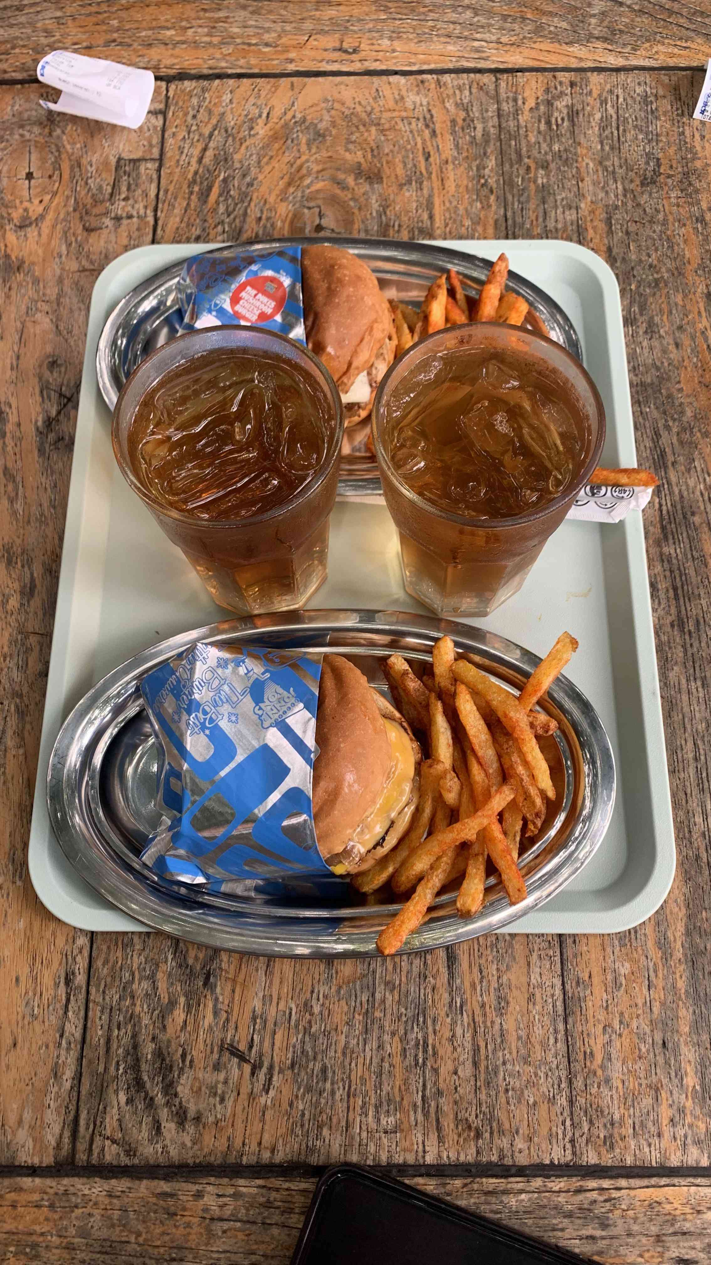 Saya akhirnya memutuskan untuk memilih salah satu best seller mereka yaitu, Classic Cheeseburger. Bukan karena saya tak ingin mencoba hal lain, namun saya percaya bahwa tempat yang bagus selalu terlihat dari bagaimana mereka memperlakukan menu klasiknya. Saya juga tidak lupa menambahkan Fries (kentang goreng) di burger yang saya pesan, dan juga minuman Ice Tea sebagai menu yang saya ingin nikmati sore ini. Setelah saya menunggu sekitar 30 menit hidangan itu datang, seorang pria dengan penampilan rapih dan ramah terlihat akan menyajikan makanan yang saya pesan.